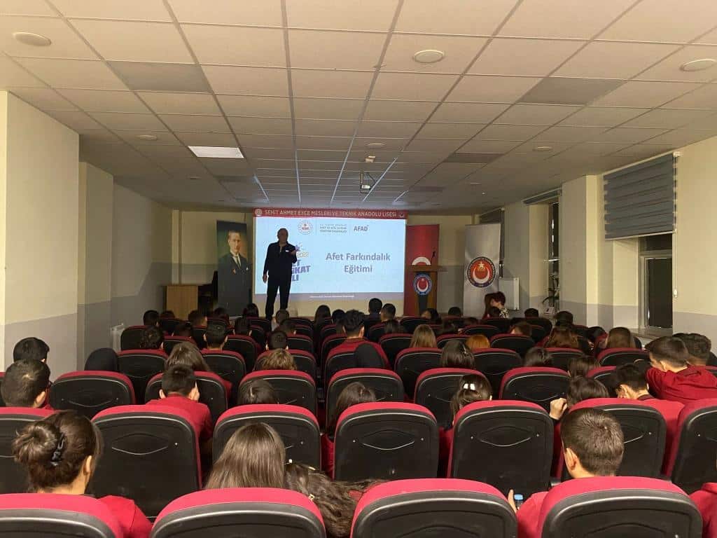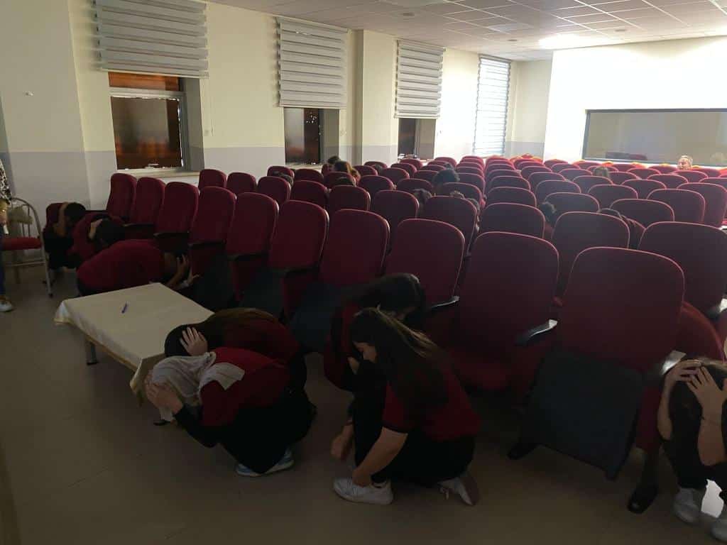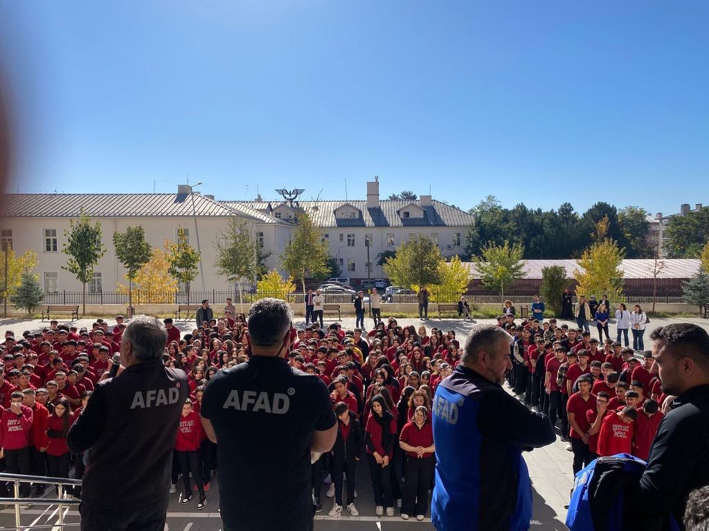 İlimiz AFAD ekipleri tarafından okulumuz öğrencilerine yönelik doğal afetler semineri ve tatbikatı düzenlendi. "Çök - kapan - tutun" uygulamasının ve afet anlarında hızlı tahliyenin önemi hakkında bilgilendirilen öğrencilerimiz, yapılan tatbikatla da öğrendiklerini uygulama şansı buldular. AFAD ekiplerine çalışmalar dolayısıyla teşekkür ederiz.